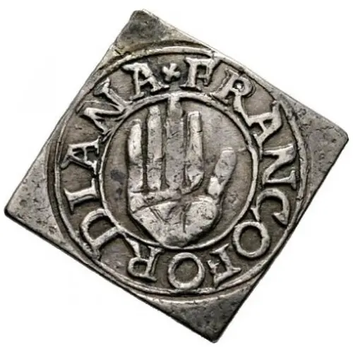 | Descrição do reverso | Cross with `v` ends in concave rhombus, pellet in each `v`. |