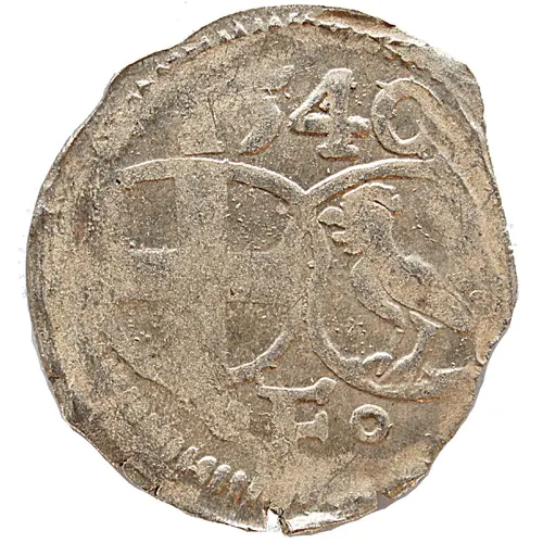 | Obverse description | Year above two emblems (Fuldaer Stiftskreuz left, Henneberg-hen right). |