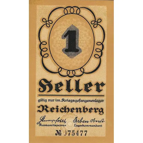 1 heller giltig nu rim kriegsgefangenenlager Reichenburg Kassamitsperrer Lagerkommandant No 0754477 |