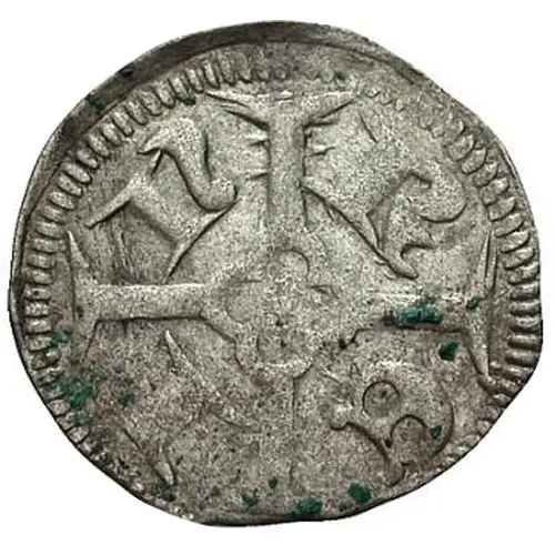 Описание реверса Shielded lion arms at center, surrounding in a shape of a cross the shielded arms of Mainz, Trier, Cologne and of the Palatinate.