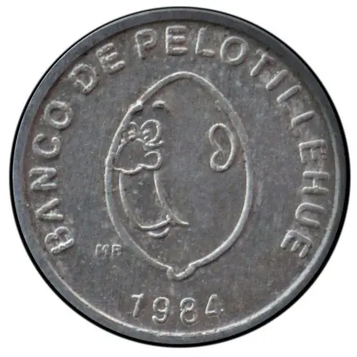 | Obverse lettering | BANCO DE PELOTILLEHUE MR 1984 (Translation: Bank of Peoltillehue TM 1984) |