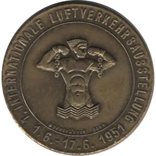 | Obverse lettering | 1. INTERNATIONALE LUFTVERKEHRSAUSSTELLUNG 1.6. - 17.6. 1956 HOFFSTÄTTER BONN |