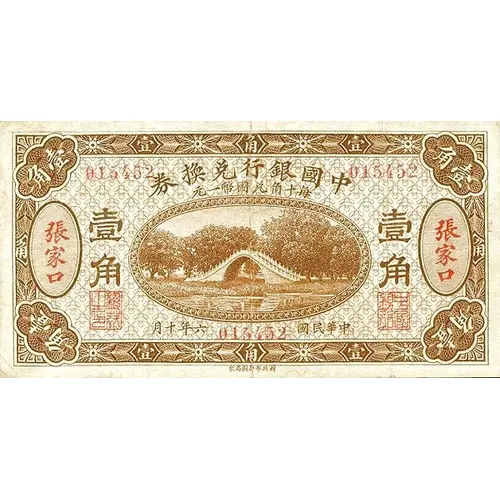 | Obverse lettering | 券换兑行银国中 壹 角 (Translation: Bank of China Exchange Note One Jiao) |