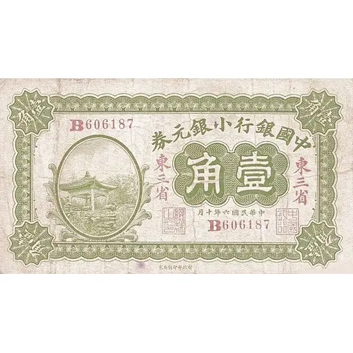 | Reverse lettering | Bank of China 10 Cents Manchuria |