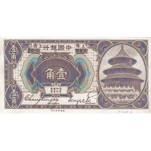 | Reverse lettering | Bank of China Китайскiй Ванкъ Promise to Pay the Bearer on Demand at its Office Here Ten Cents National Currency Subsidiary Coins |