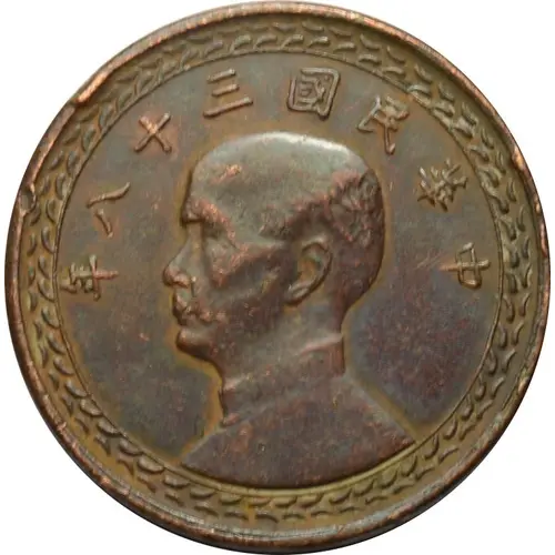 | Obverse lettering | 年八十三國民華中 (Translation: Republic of China Year 38) |