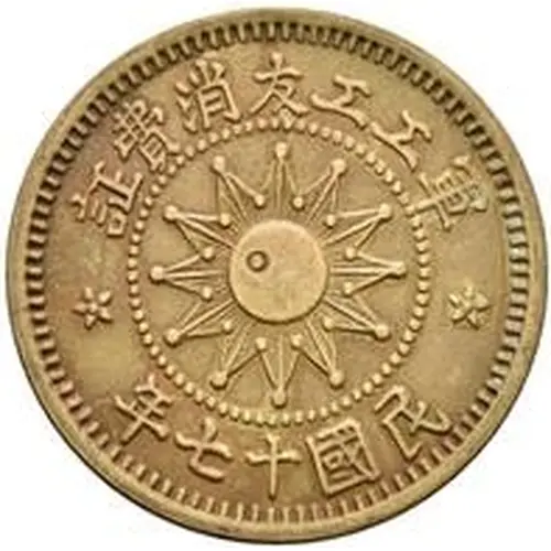 | Obverse lettering | 證費消友工工軍 年七十國民 (Translation: Military workers` ration token Year 17 of the Republic) |