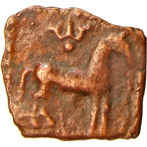 | Beschrijving voorzijde | Horse standing to right, altar in front, Trident on top. Horse is the king emblem for this dynastie. |