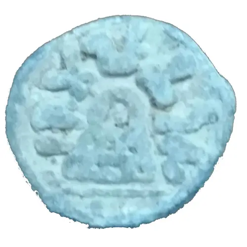 | Descripción del anverso | 8 Arched chaitya with river below. Legends around in brahmi |