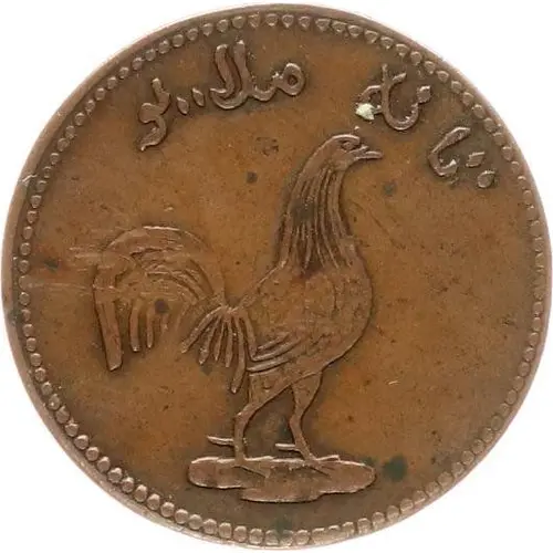| 表面の説明 | A spurred cockerel facing right with Arabic inscription at top. Beads around border. |