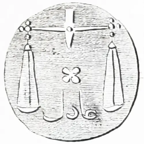 | Obverse description | Scales with X at center. |