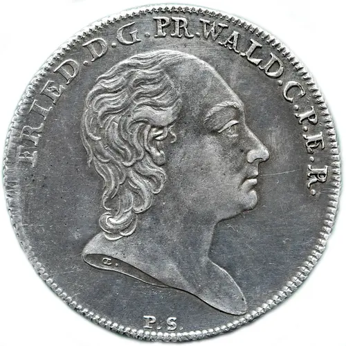 FRIED . D . G . PR . WALD . C . P . E . R . (Translation: Dei Gratia Princeps Waldecciae Comes Pyrmentanus Et Rappoldsteinensis) |