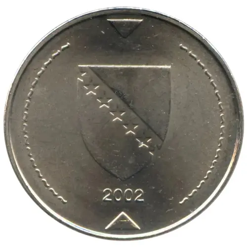 | Obverse description | Coat of arms of Bosnia and Herzegovina with two isosceles triangles above and below |