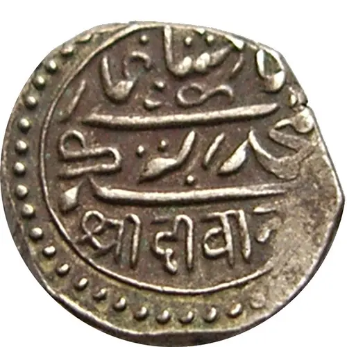 | Obverse description | Ruler: 1851 - 1882 : Mohammad Mahabat Khanji II Junagadh: Juna (Old) gadh (Fort) Top 2 lines in Urdu: `Badshah Ghazi` = Warrior Emperor `Muhammad Akbar` 3rd line in Devanagari: `Shri Divan` |