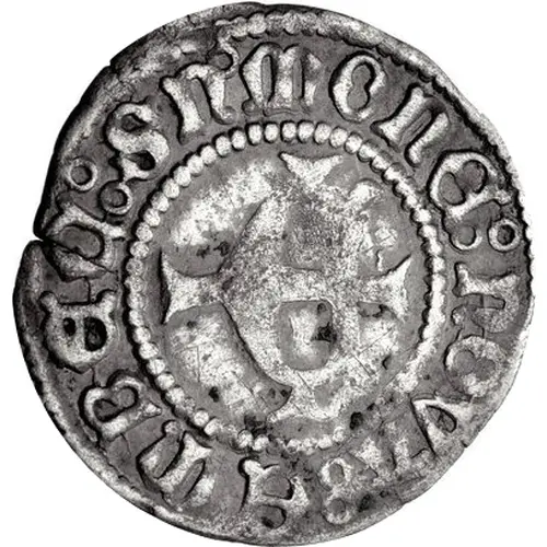 | Obverse description | Gothic E superimposed on cross patée in beaded circle. |
