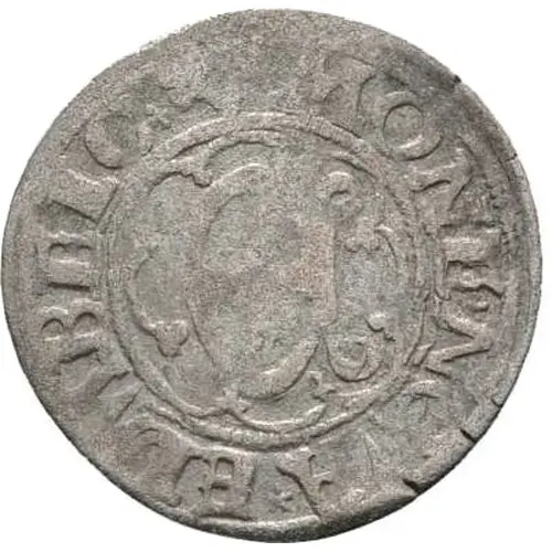 Reverse description Gothic E superimposed on cross in circle, Roman or probic date at end of legend.