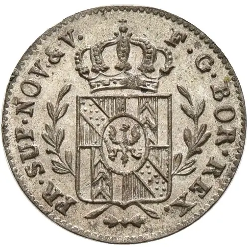 F · G · BOR · REX · PR · SUP · NOV · & V · (Translation: Frederick William, King of Prussia, sovereign Prince of Neuchâtel and Valangin.) |