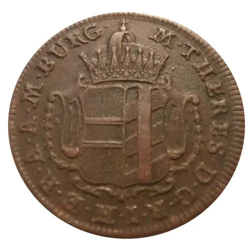 | Obverse description | Crowned arms, legend (start 1h) for `Maria Theresia Dei Gratia Romanorum Imperatrix Hungariae Bohemiae Regina Archiducisa Austriae Margravius Burgoviae` |