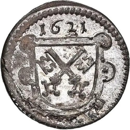 Описание аверса Regensburg arms (crossed keys) in ornate shield, date above
