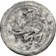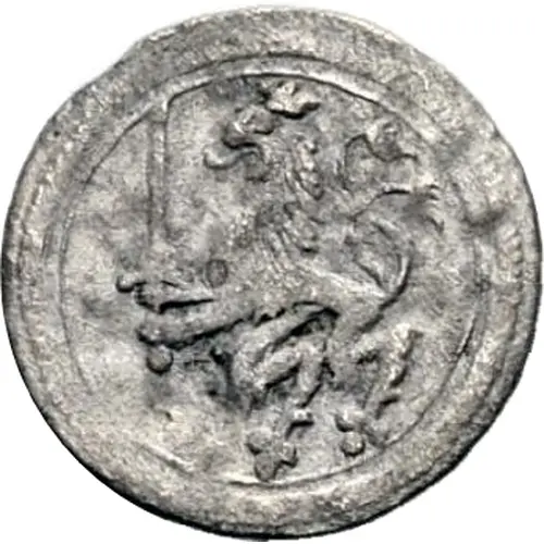 Crowned lion holding sword facing left.