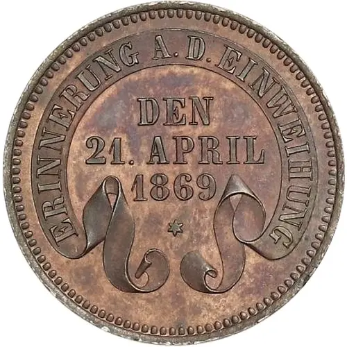 | Obverse lettering | ERINNERUNG A.D.EINWEIHUNG DEN 21. APRIL 1869 (Translation: Commemoration of the inauguration on the 21st of April 1869) |