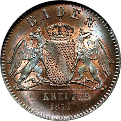 | Obverse lettering | BADEN 1. KREUZER 1871 |