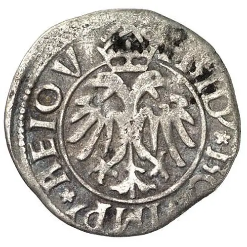 | Mô tả mặt trước | Crowned double headed imperial eagle within a circle, legend around for `Fridericus Romanorum Imperator ...` Rosettes for punctuation. |