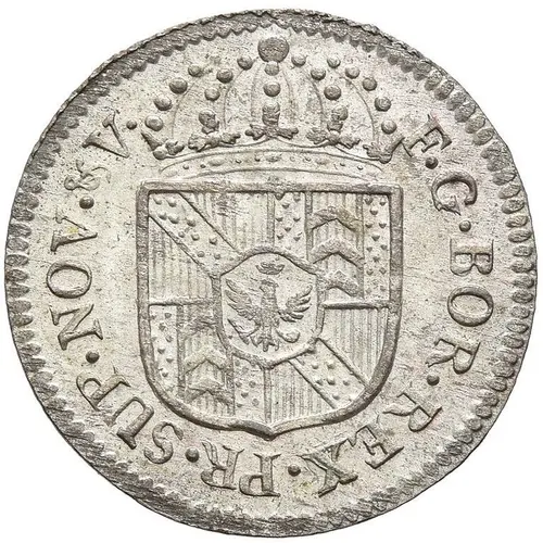| Obverse lettering | F · G · BOR · REX · PR · SUP · NOV · & V · (Translation: Frederick William, King of Prussia, Sovereign Prince of Neuchâtel and Valengin.) |