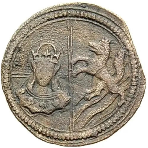 | 表面の説明 | Two-fold arms divided vertically, facing bust of St. Hildegard on left, wolf rampant left above diagonal bands from upper right to lower left in right half. |