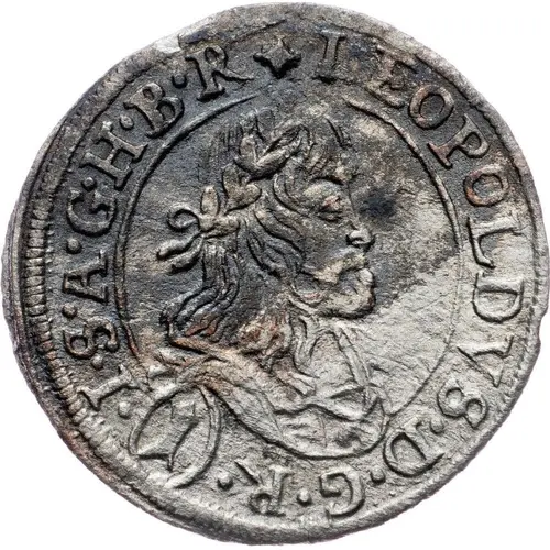 Laureate portrait of Leopold I of Habsburg facing right, denomination in Roman numerals in the legend at 7h. |