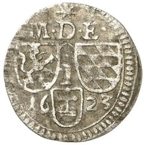 | Obverse lettering | • M • D • E • 16 23 |
