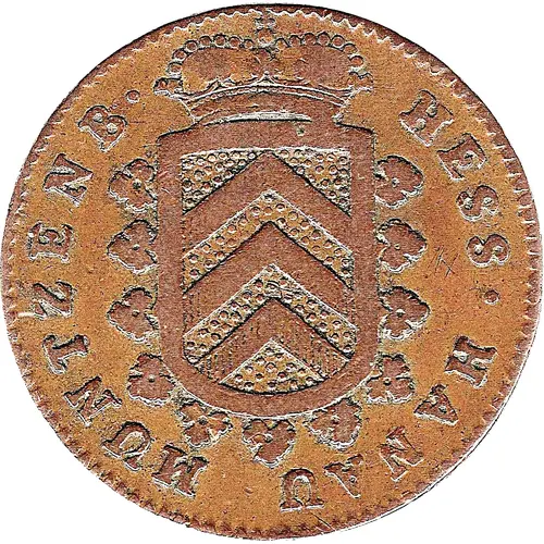 | Obverse lettering | MUNTZENE. HESS. HANAU |