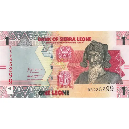 | Надписи лицевой стороны | 1 Bank of Sierra Leone 1 promise to pay on demand the sum of One Leone 1 Bai Bureh 1840-1908 1 |