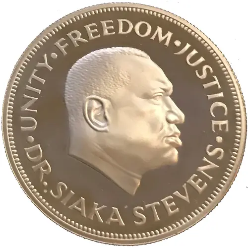 | Obverse lettering | · UNITY · FREEDOM · JUSTICE · DR. SIAKA STEVENS |