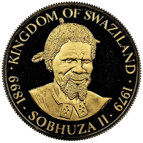 توضیحات روی سکه Portrait of the King Sobhuza II