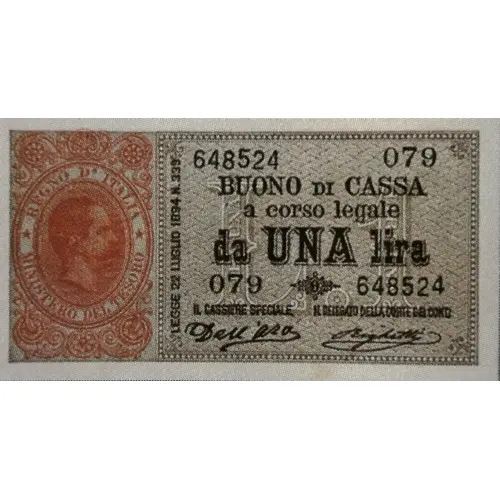 | Obverse lettering | BUONO di CASSA a corso legale da UNA lira |