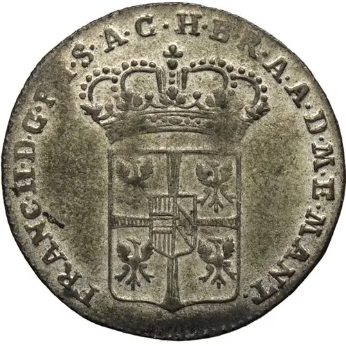 | Obverse lettering | FRANC II D G R I S A G H B R A A D M MANT |