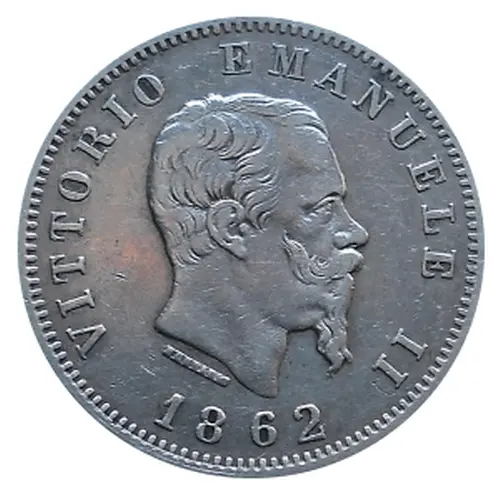 | Obverse lettering | VITTORIO EMANUELE II FERRARIS 1862 |
