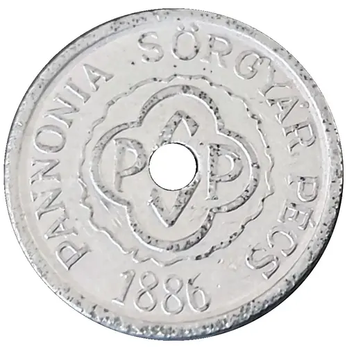 | Legenda do anverso | Pannónia Sörgyár Pécs PSP 1886 (Translation: Pannonia Brewery Pecs 1886) |