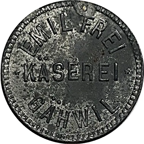 | Obverse lettering | EMIL FREI KÄSEREI GÄHWIL (Translation: Emil Frei, dairy, Gähwil.) |