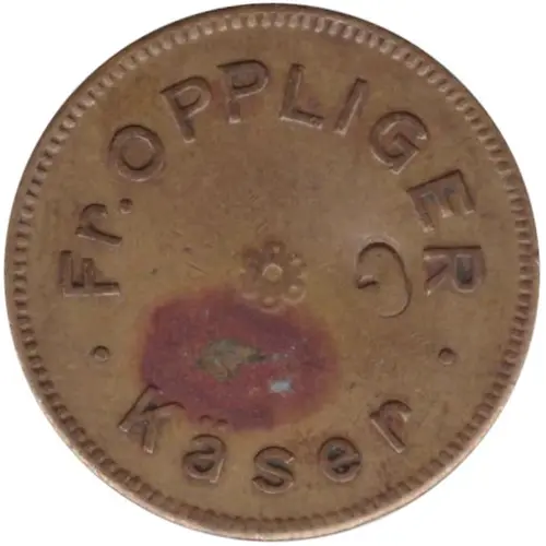 | Obverse lettering | Fr. OPPLIGER G • Käser • (Translation: Cheesemaker Fr. Oppliger.) |