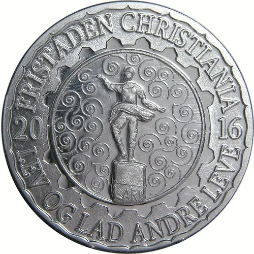 | Legenda awersu | FRISTADEN CHRISTIANIA 2016 LEV OG LAD ANDRE LEVE (Translation: Freetown Christiania Live and let others live) |
