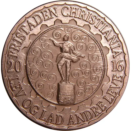 | Legenda awersu | FRISTADEN CHRISTIANIA 2016 LEV OG LAD ANDRE LEVE (Translation: Freetown Christiania Live and let others live) |