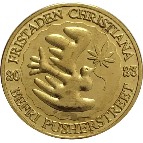 | 正面描述 | A dove (symbol of peace) carrying a cannabis leaf. |