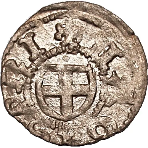 | Obverse description | Solid cross in shield surrounded by legend. |