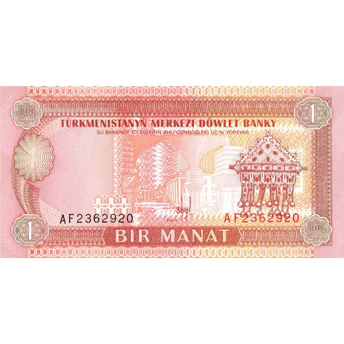 TÜRKMENISTANYÑ MERKEZI DÖWLET BANKY $U BANKNOT TÖLEGLERIÑ ÄHLI GÖRNÜ$LERI ÜÇIN ҰÖREҰÄR BIR MANAT (Translation: Central State Bank of Turkmenistan, This banknote is valid for all types of payments, One Manat) |