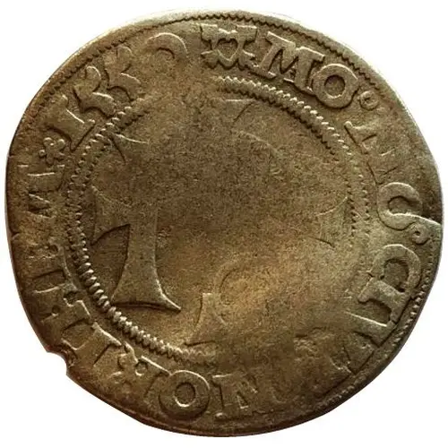 | Obverse description | Large Gothic `N` superimposed on cross, legend ends with date. |