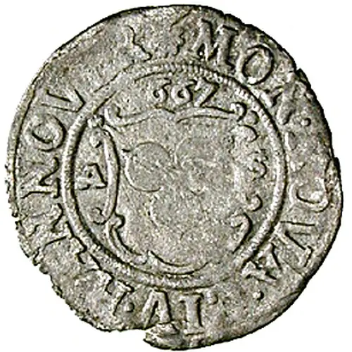 | Obverse description | Arms in ornamented shield, date above. |