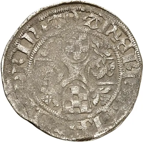 | Obverse description | 4 small shields of arms in cruciform, lily between each 2, legend, mint symbol. |
