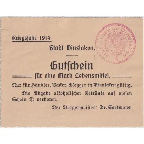 | Issuer | City of Dinslaken (Prussian province of Rhine) |